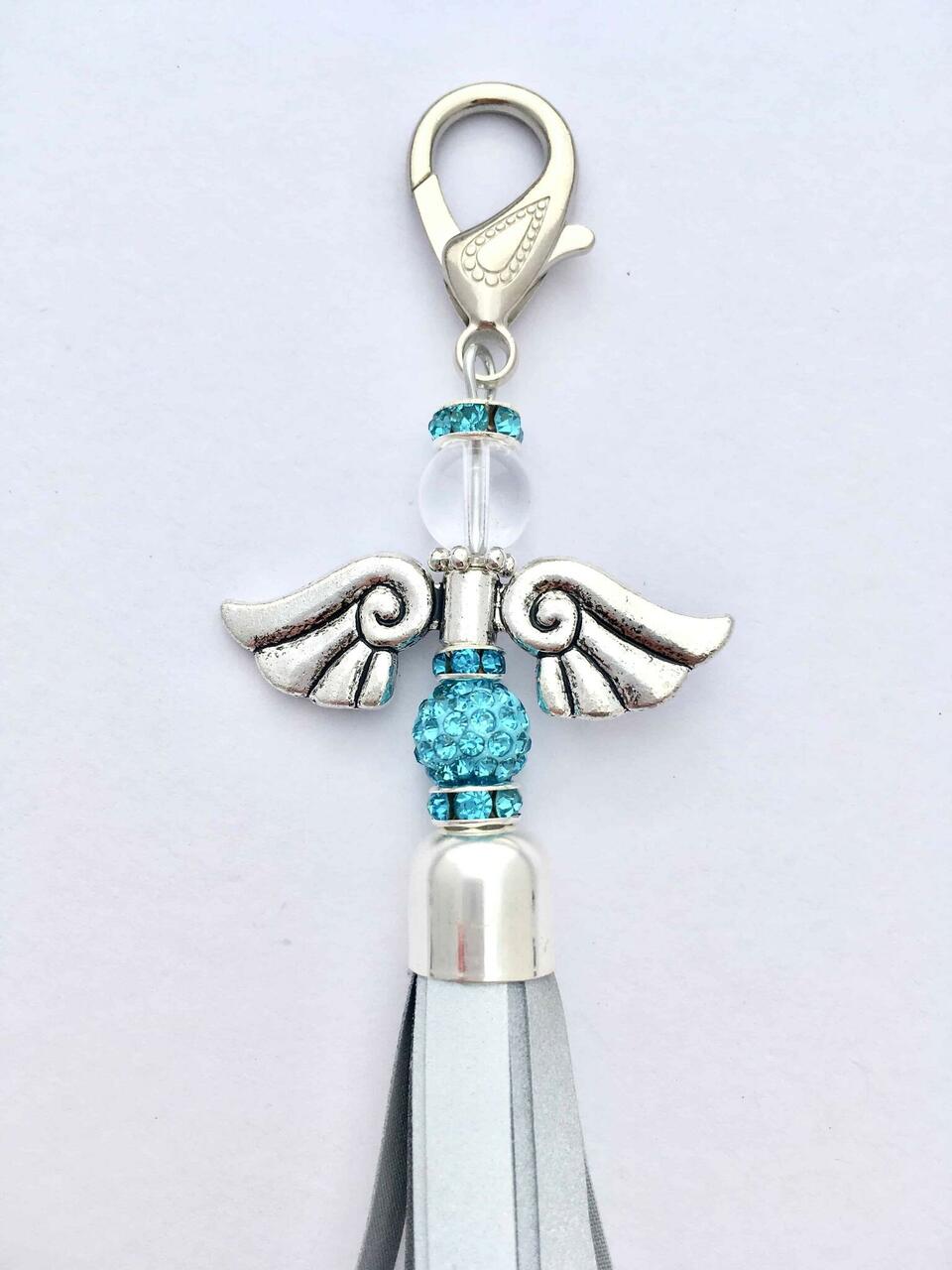 Käsitööna valminud helkiv kaitseingel, poolvääriskividest on kasutatud mäekristalli.