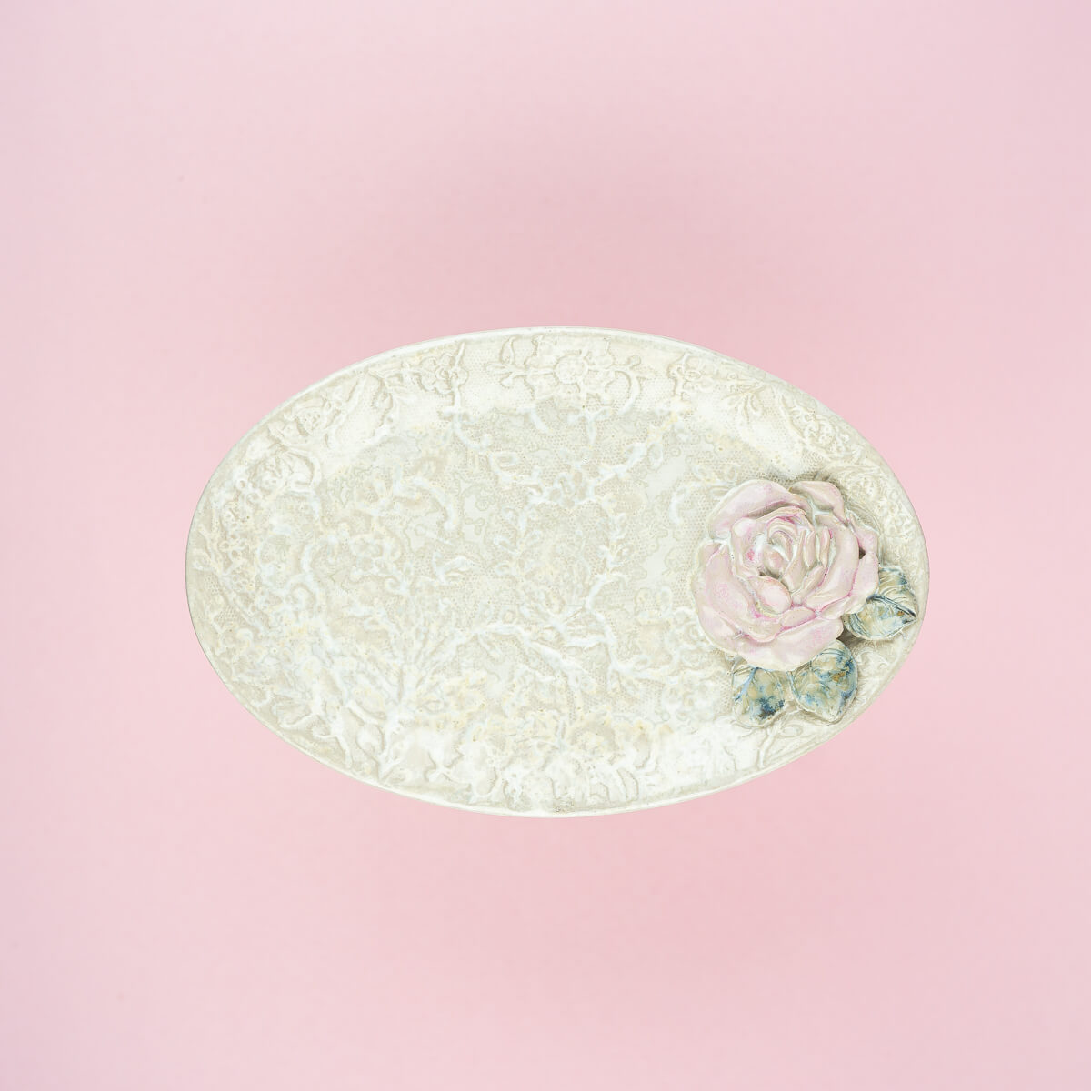 Õrn ja romantiline vaagen, valminud Eestis käsitööna Liivika Asumaa poolt. Tarbekeraamika sarjast "Roos".