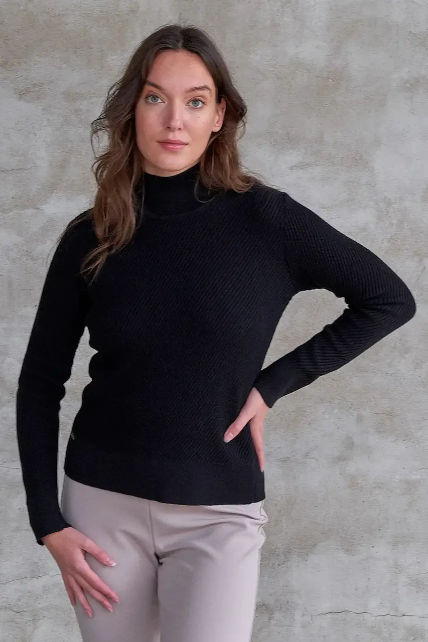 Mithio naiste kõrge kaelusega pehme meriinovillane polokampsun on diagonaalse reljeefse koega.