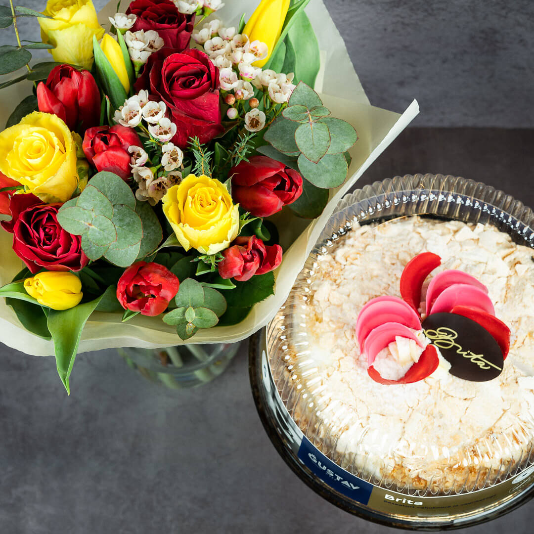 Üllatus kombo: särav lillekimp ja tort 69.00€