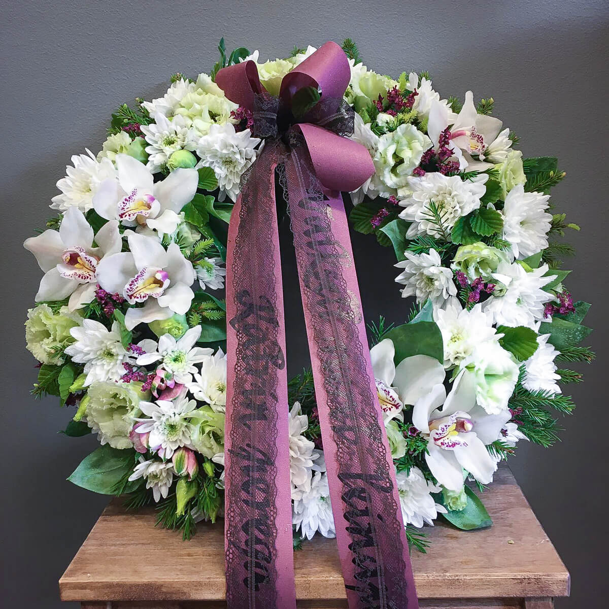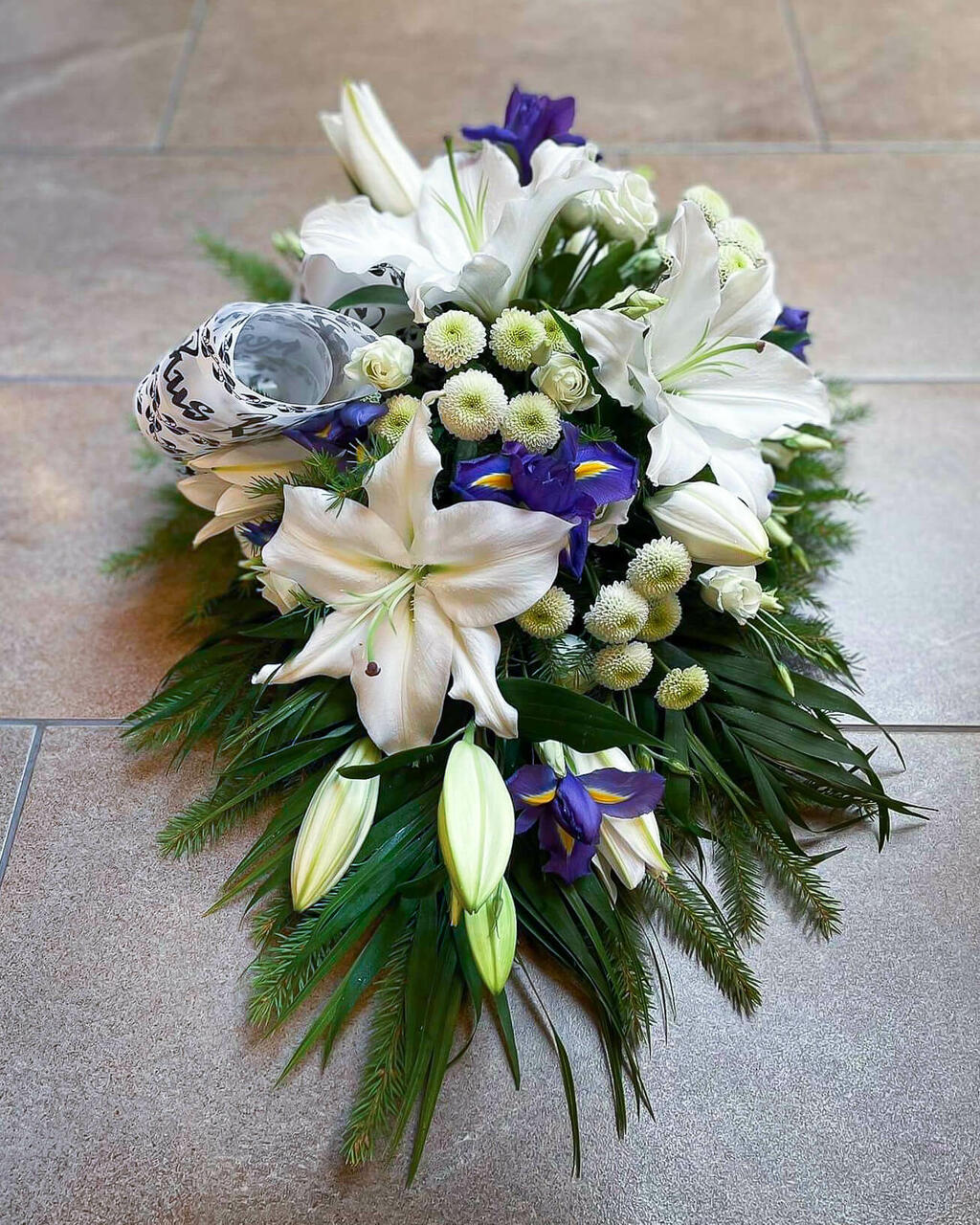 Valge-lilla tilgakujuline leinakimp al 70.00€