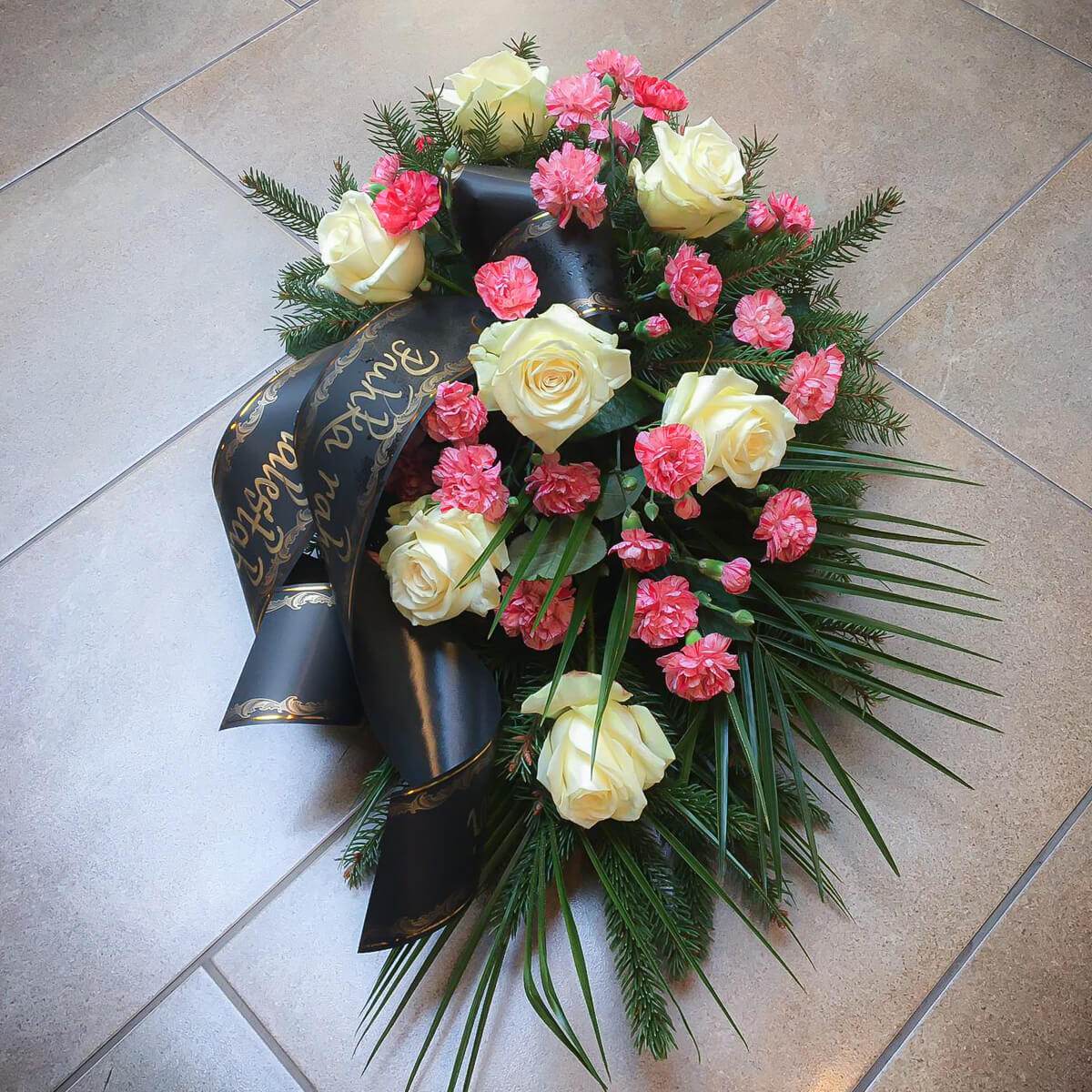 Valge-roosa tilgakujuline leinakimp al 75.00€