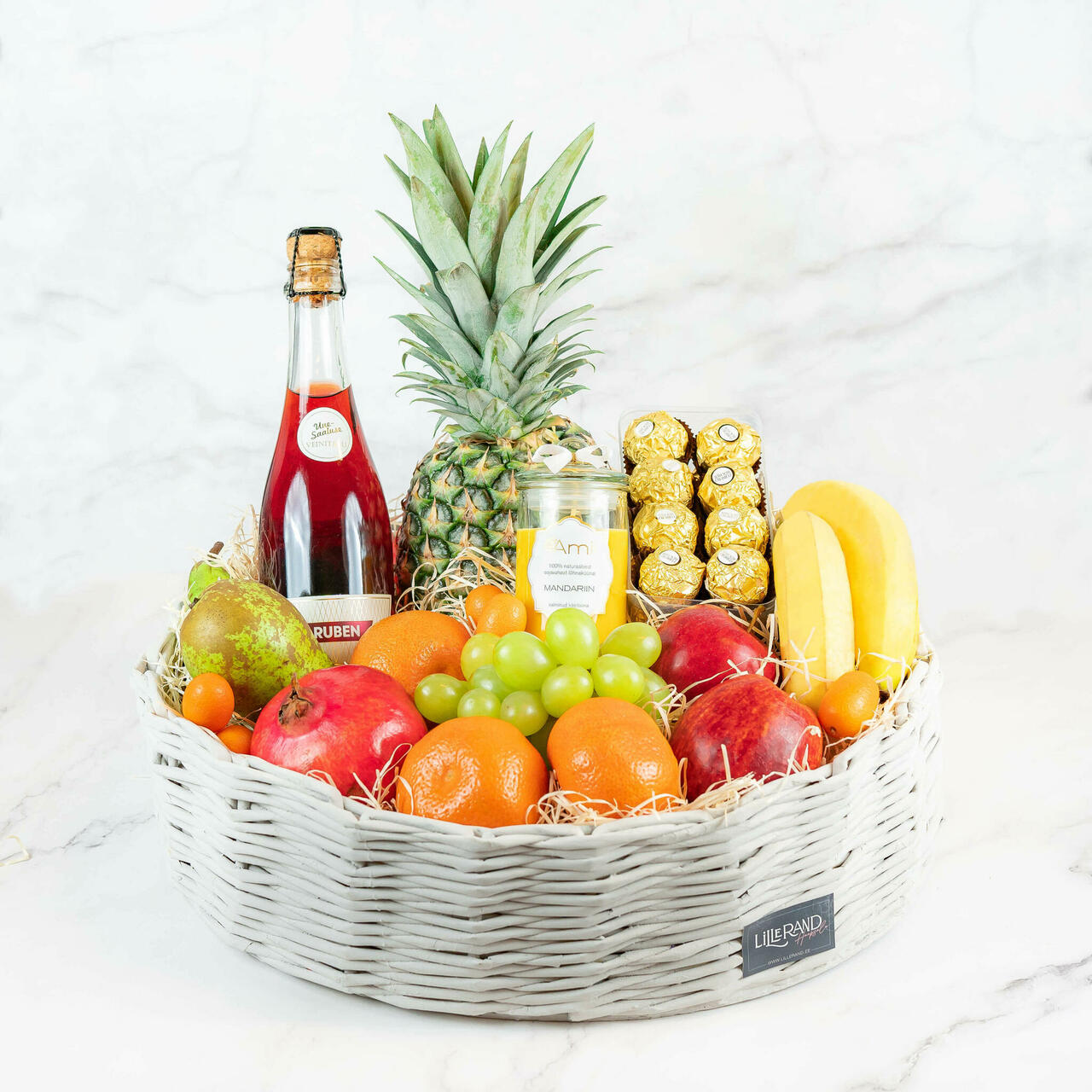 Tootepildid on illustratiivsed. Lilleranna floristid jätavad endale õiguse teha asendusi kinkekorvi, puuviljade ja toodete valikus, et üldmulje säiliks ja toote rahaline väärtus ei muutuks.