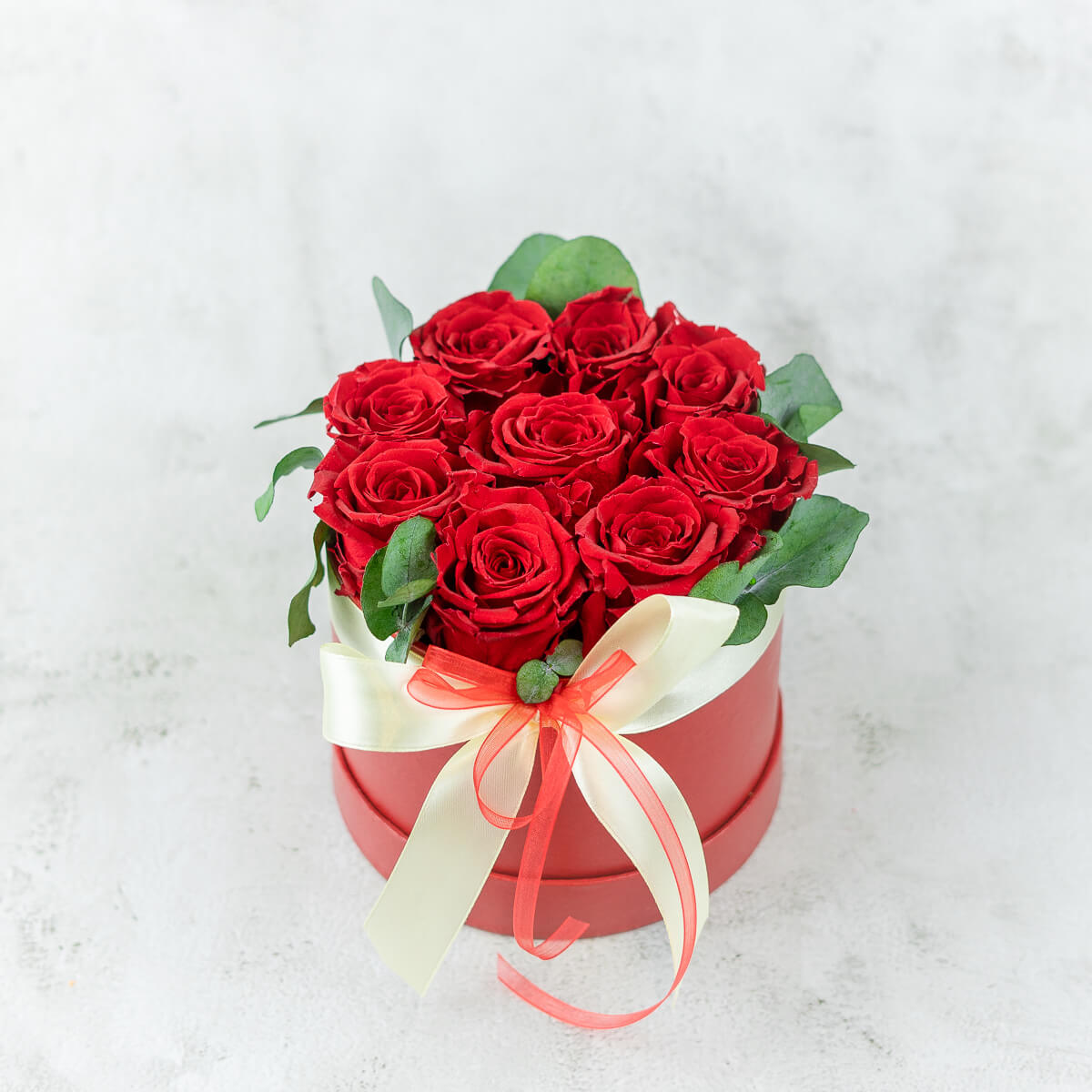 Kaunis punane seade koosneb 9 uinuvast roosist ja kauasäilivast eukalüptist. Uinuvad roosid on ehtsad roosid, mis säilivad vähemalt 1 aasta.