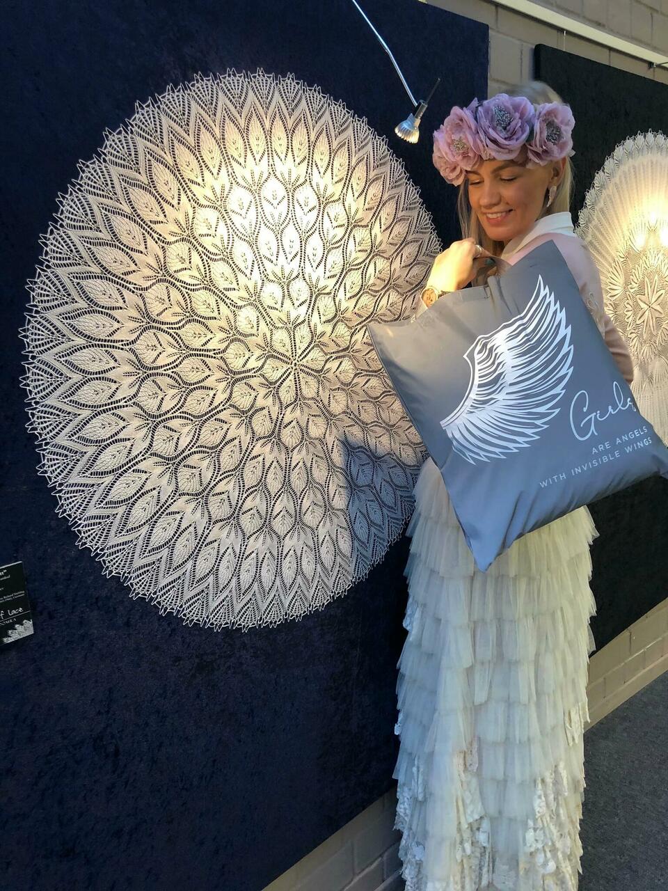 Koti ühele küljel on glamuurne tiib ja tekst: Girls are angels with invisible wings.