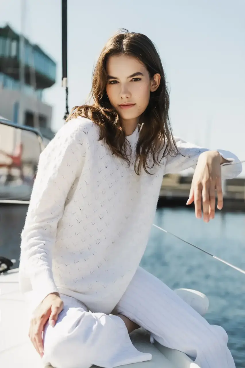 Ümara kaelusega õhem, kuid soe ja pehme meriinovillane kampsun. Kampsun on vaba ja avara joonega ning üleni pitskoes.