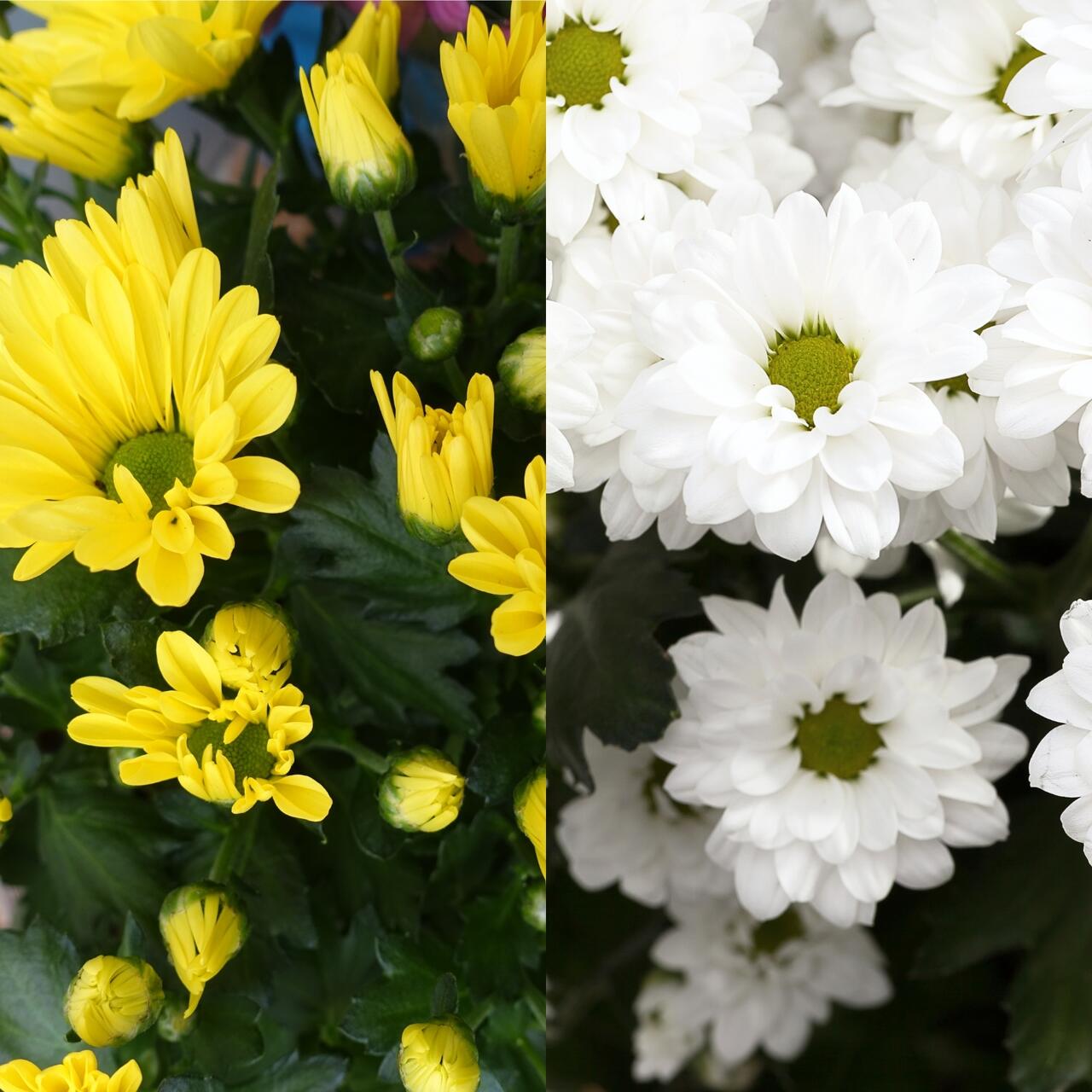 Meie valikus leidub valgeid ja kollaseid krüsanteeme (12 cm taimepott).