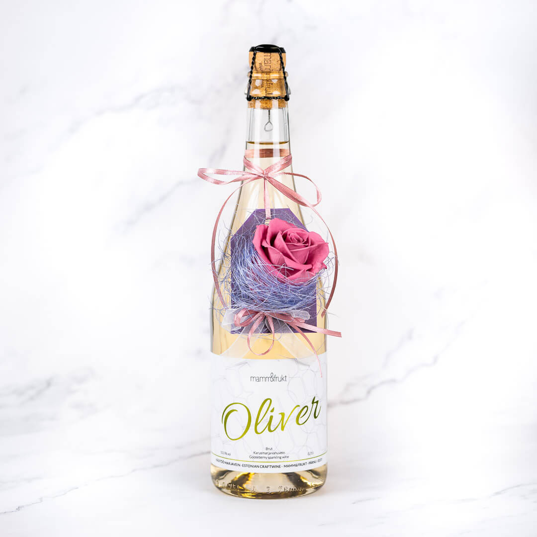 Meie floristid seavad vahuveinile kauni uinuva roosi lisandi. Armas kombo, milles lilled ja kingitus üheskoos.